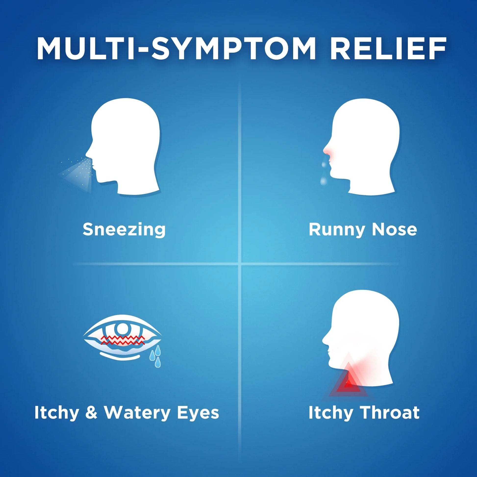 - Helps relieve sneezing, runny nose, itchy eyes throat