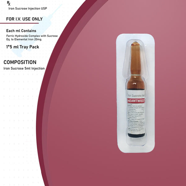 | Ingredients | Iron Sucrose 50 mg 100 mg per 5 ml |