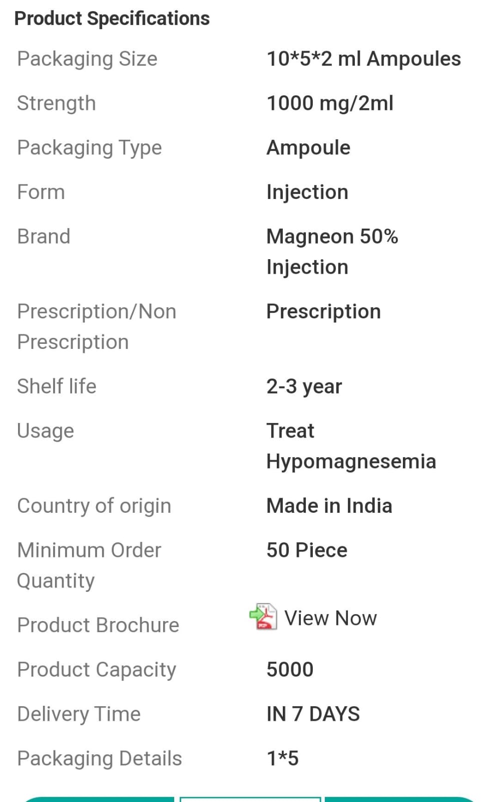 Magnesium Sulphate Injection IM IV 2 mg a vial