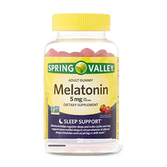 Non-GMO Spring Valley Vegetarian Melatonin Gummies contain 5mg of Melatonin per serving. Melatonin helps regulate sleep and wake cycles and may support more restful sleep in circumstances of altered sleep schedules such as jet lag or shift work.