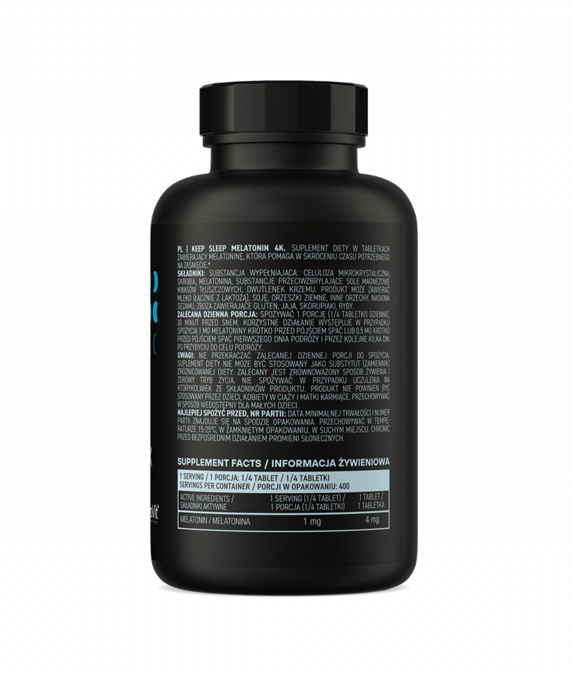 Low dosage Melatonin 4 mg. European Union certified manufacturer.
