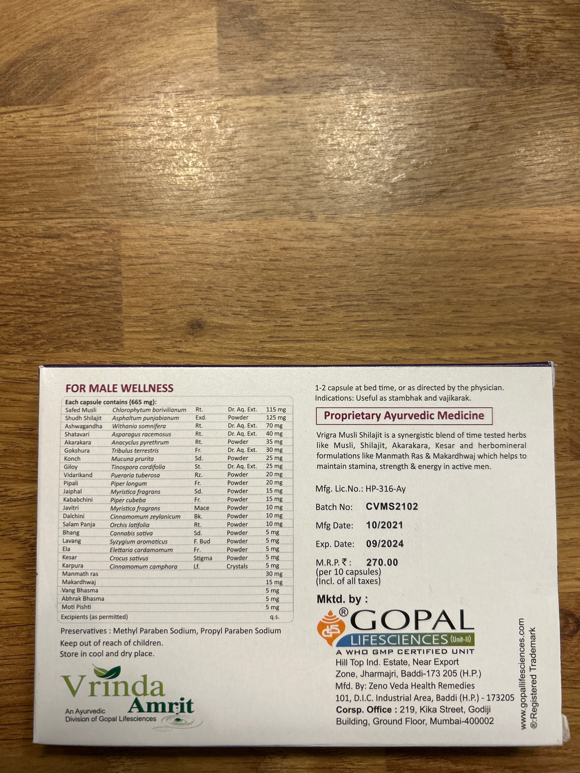 Vrigra Musli Shilajit - Men Vitality - 10 capsules